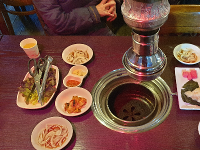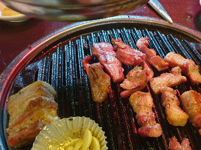 사진 찍는 걸 잊어 먹고 그냥 불판에 올렸네요. 접시에 가득 나옵니다.