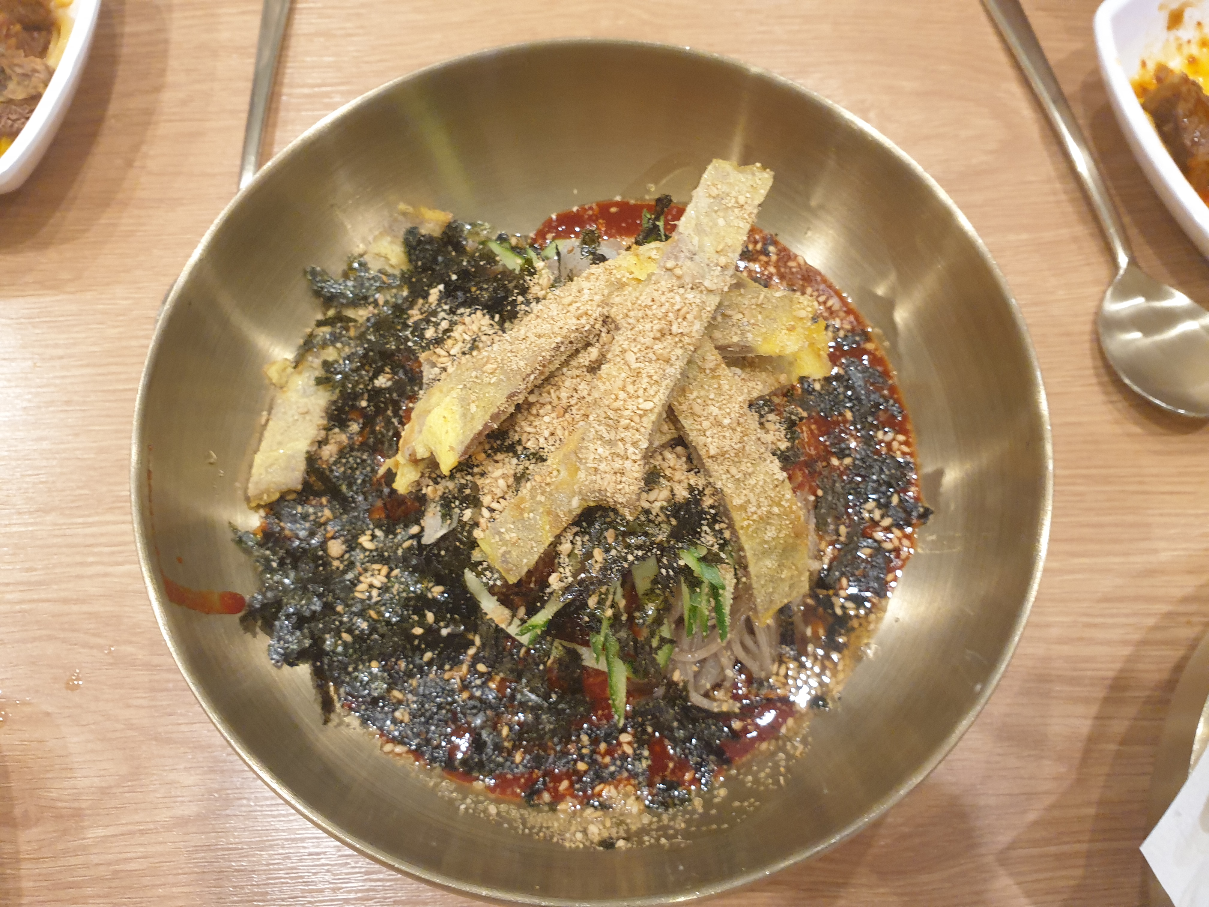 그러나 육전과 국수를 같이 먹으니 육전이 차가워서 아무 맛도 안났어요 그대신 국수의 들기름향이 참 좋았어요