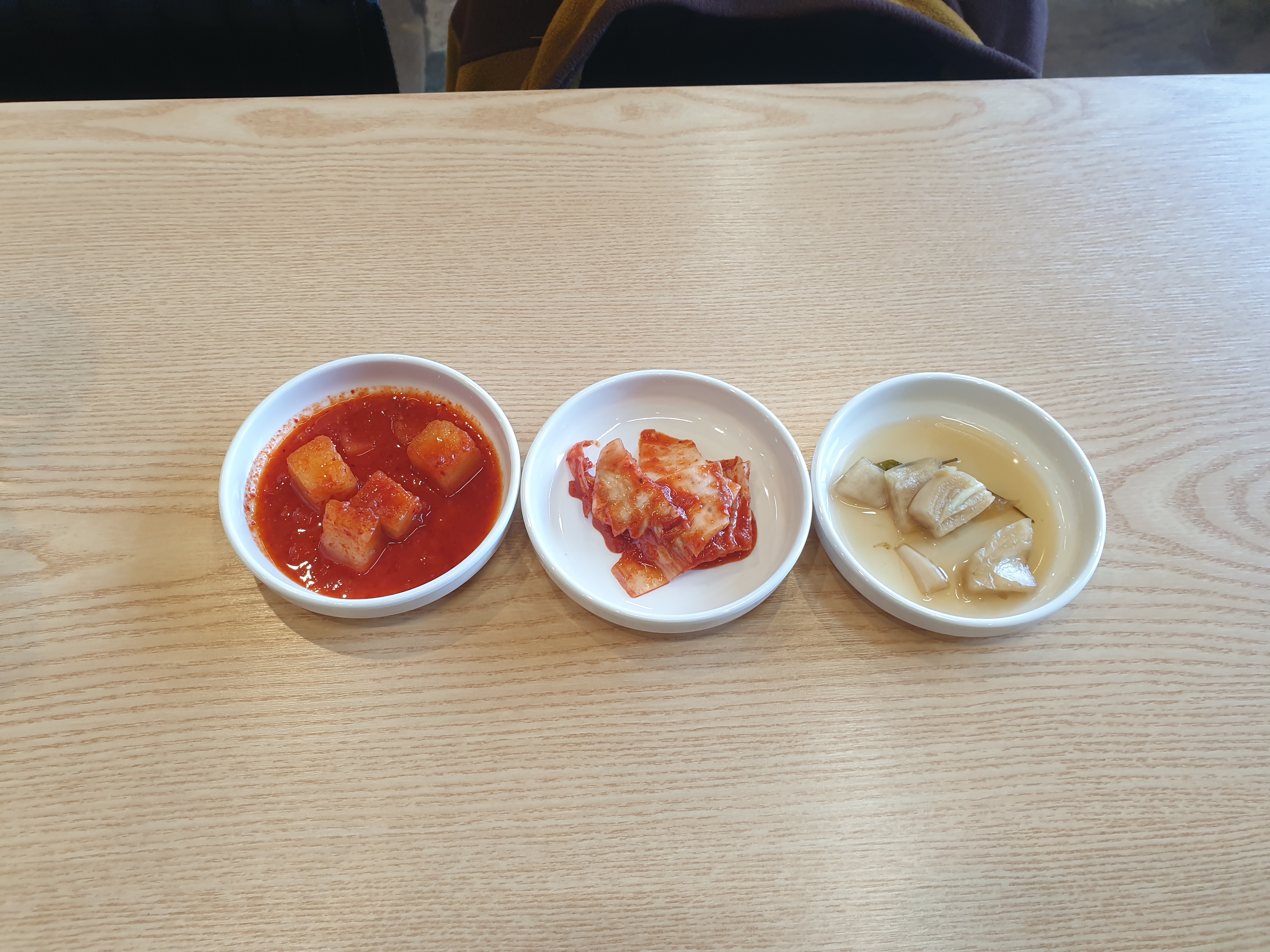 기본 반찬 3가지 추가반찬은 셀프바를 이용하면 되고요