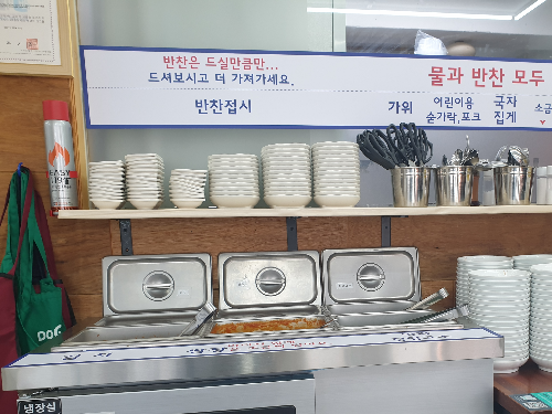 물과 기본 반찬이 셀프