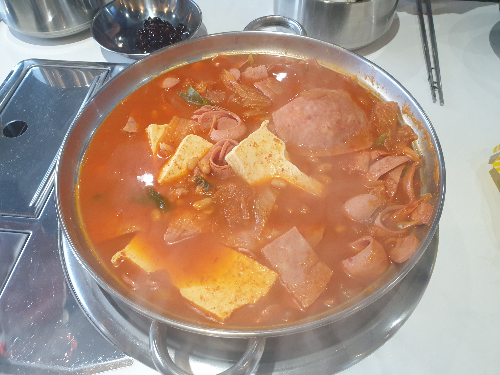 두 테이블에 부대찌개를 먹었어요